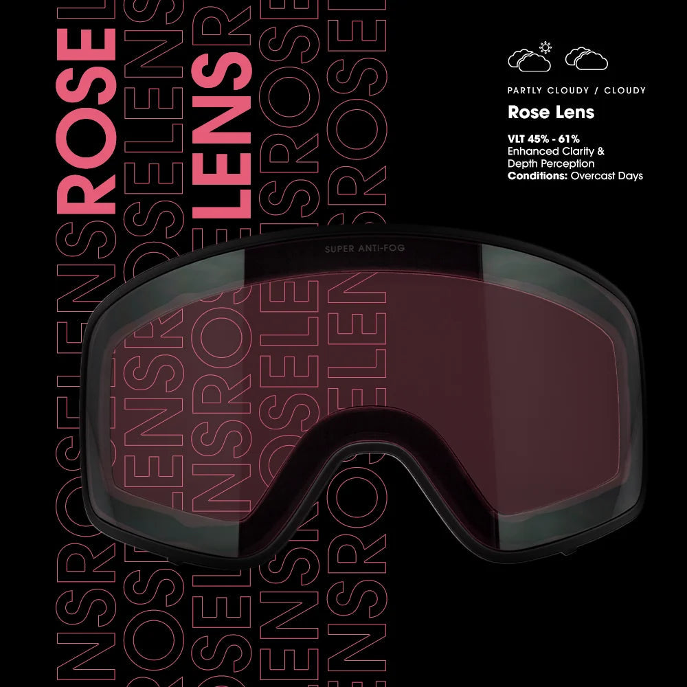 Engineered to perfection, our Rose Lenses offer enhanced contrast and depth perception, ensuring every carve and turn is made with confidence. The rose tint boosts visibility in lower light, illuminating the slopes and making obstacles stand out, so you can focus on the thrill of the ride. Built for riders who refuse to let cloud cover ruin a session, CARVE's Rose Lenses merge technology with style, promising clear vision and a fresh look, no matter the weather. Gear up and greet the clouds with clarity.