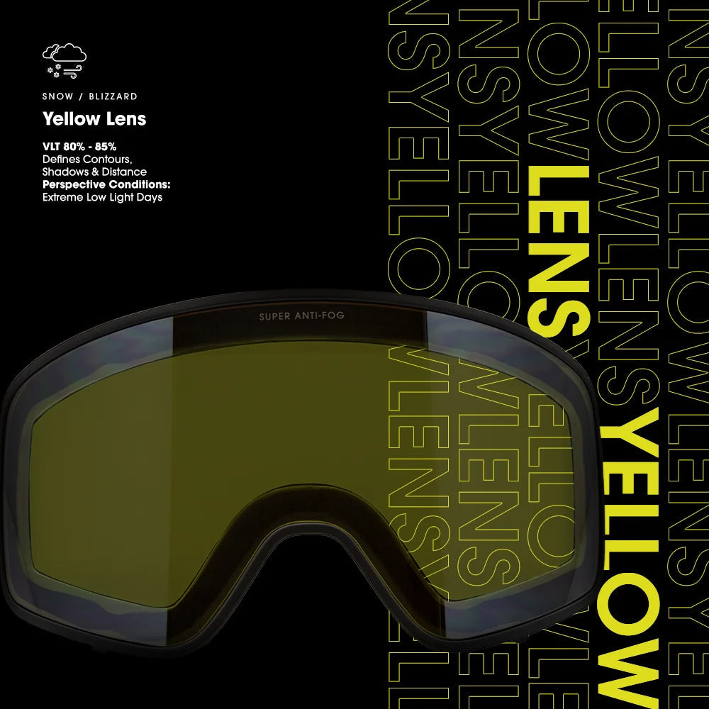 Designed to combat the challenges of low visibility, these lenses work magic by brightening your environment and dramatically enhancing contrast. The yellow tint cuts through the flurry, providing a clearer view of the slopes ahead, so you can navigate with confidence and precision.